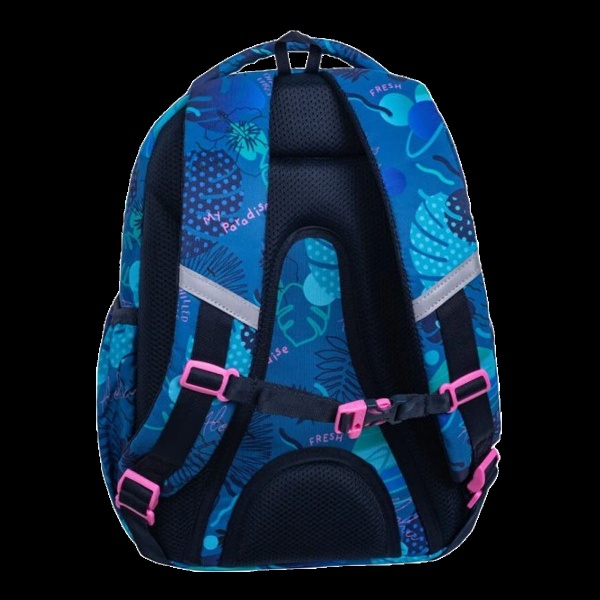 Rozměry: š: 28 × v: 38 × h: 19 cm, velikost: 19 l, materiál: 100 % polyester, 4 kapsy na zip, 2 menší otevřené kapsy, voděodolný, reflexní prvky, poutko na zavěšení, polstrovaná záda, klíčenka s motivem Stitche