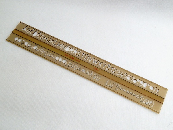 Plastová šablona pro technické výkresy písmen, čísel a znaků