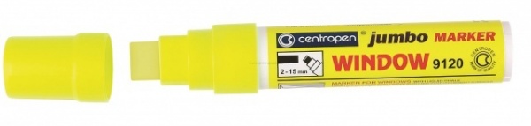Bezvadně kreslí na sklo. Velkoobjemové značkovače Jumbo jsou vhodné k popisování oken, výloh, zrcadel, automobilových skel, neporézních školních tabulí. Díky velké krycí schopnosti a zářivým barvám inkoustu jsou nápisy velmi dobře viditelné i z velké dálky. Značkovače jsou plněny tekutou křídou na vodní bázi, která rychle zasychá a lze jí snadno setřít suchým nebo vlhkým hadříkem. Obdélníkový hrot může vytvořit stopu šíře 2-15 mm. Přepouštěcí mechanismus.