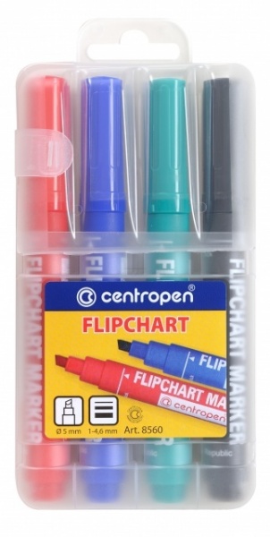 Značkovač je určen pro psaní na papír, zejména na papírové tabule Flipchart. Vysoká odolnost proti zasychání inkoustu v hrotu. Funkčnost otevřeného značkovače je 1 týden. Inkoust na vodní bázi se nepropíjí papírem a je bez zápachu. Klínový hrot, šíře stopy 1-4,6 mm.