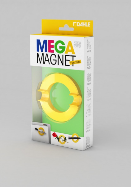 Designový držák ve tvaru O se silným magnetickým uchycením na zadní straně. Dva úchyty pro uhycení zakulacených předmětů, např. popisovač, vařečku, baterku nebo vázu (zkumavku) s květinou. Umístění je snadné díky čtyřem neodymovým magnetům - podkladem může být jakýkoliv kovový povrch, např. lednice a magnetické tabule. Pevně drží a lze s ním dle potřeby manipulovat. Rozměr: průměr 80 mm. Barva: žlutá. Materiál: plast. Balení: 1 ks.