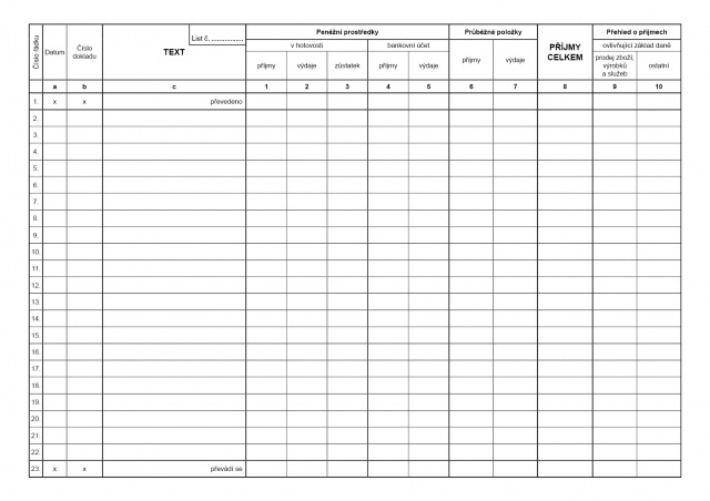 Daňová evid./peněžní deník bez DPH Bal.ET328