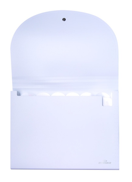 Desky na dokumenty s gumou a rejstříkem. Tyto elegantní polypropylenové desky v bílé barvě obsahují 7 kapes, které jsou vhodné pro formát A4 a menší dokumenty. Desky obsahují lepicí štítky pro snadnou identifikaci obsahu. Uzavírají se pomocí elastické gumy na knoflík.
