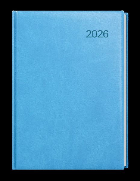 Denní diář ve světle modré barvě z jemné vivelly ve formátu A5. Má velký prostor pro poznámky a plánování.