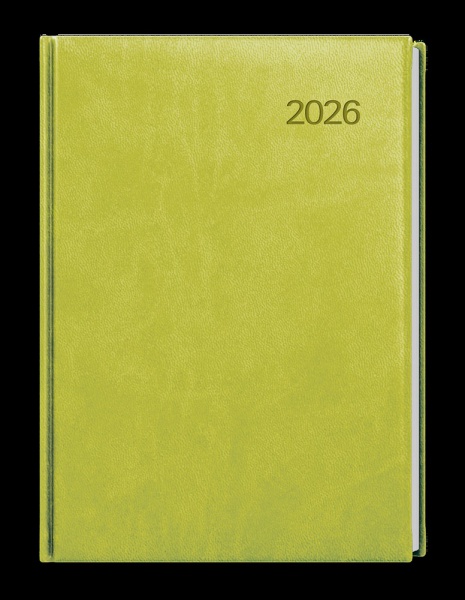 Denní diář v zelené barvě z jemné vivelly ve formátu A5. Má velký prostor pro poznámky a plánování.