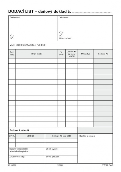 Dodací list A5/100ls s kopií Typos
