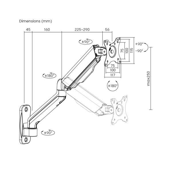 Flexibilní nastavení polohy: Držák umožňuje snadné nastavení výšky, nastavitelný náklon monitoru v rozsahu +90°~-90°, vychýlení do stran v rozsahu +90°~-90° a otočení monitoru o 360°, takže můžete snadno najít optimální pozici pro pohodlné a ergonomické používání. Odnímatelná deska VESA umožňuje snadnou instalaci monitoru.