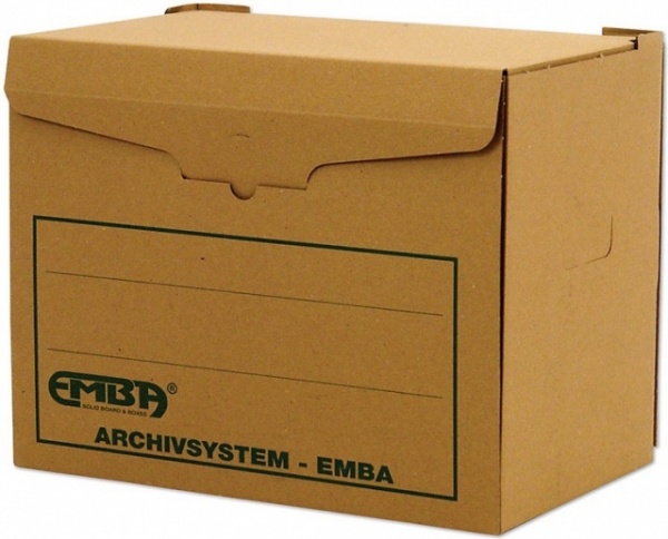 Archivní box, skupinový, karton, barva hnědá, zelený potisk, 400mm x 265mm x 335 mm.