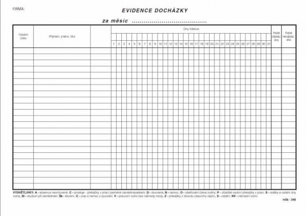 Evidence docházky mSk 246 A4