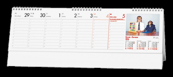 Dělená kovová spirála „twin wire“. Obálky jsou tištěny na kvalitní křídový papír a jsou povrchově upraveny lesklým UV-lakem proti otěru. Vnitřní listy jsou tištěny na speciálním papíru v gramáži 90 až 115 g/m2 (stolní pracovní kalendáře jsou tištěny na ofsetový papír v gramáži 70 g/m2). Vhodné pro psaní perem, tužkou. Formát: 365 x 104 mm, počet stran: 57, kalendárium: české týdenní jmenné, měsíční fáze, roční období, letní a zimní čas.