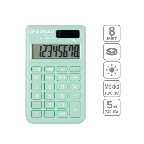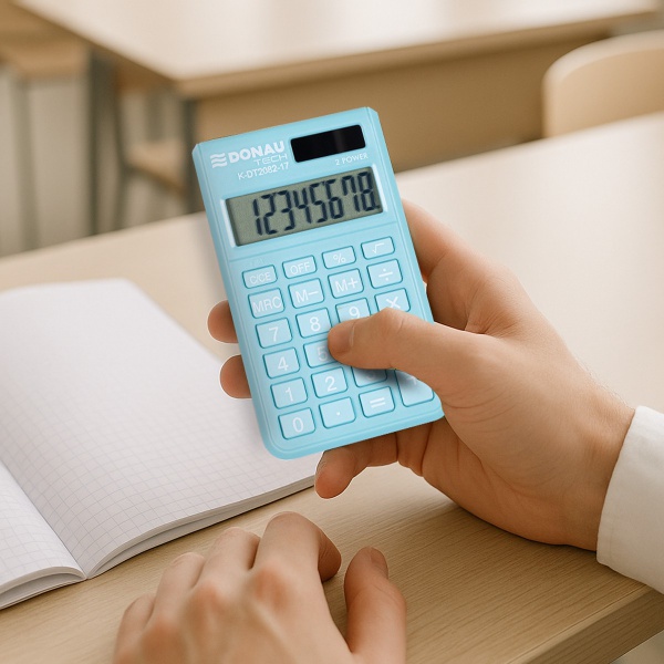 Kapesní kalkulačka s 8místným displejem, vhodná do školy nebo kanceláře. Duální napájení (baterie + solární článek) umožňuje nepřetržité použití. Praktické funkce pro výpočet procent a druhé odmocniny, automatické vypnutí pro úsporu energie. Prodloužená záruka 5 let. Moderní a svěží barva, kompaktní velikost pro snadné přenášení.