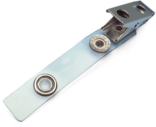 Kovový klips pro uchycení visačky s předděrovaným oválným otvorem. Čirá plastová šle otočná o 360°.