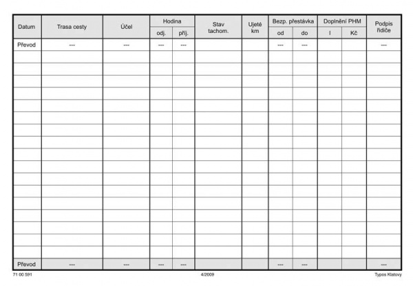 Kniha jízd firemního vozidla A5/20ls Typos