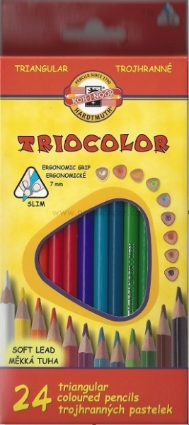 Trojhranné školní pastelky v soupravě. Vhodné pro běžné kreslení. Barevná stopa na papíru je sytá.