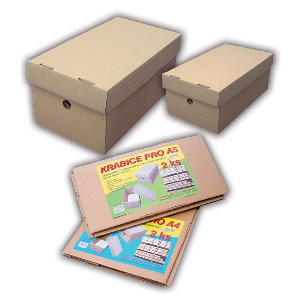 Archivační krabice vnitřní rozměr A4. Vyrobena z třívrstvé lepenky. Cena uvedena za dva kusy.