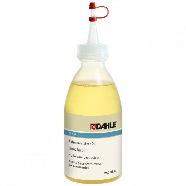 Pro plynulý a bezporuchový chod skartovaček je nezbytné pravidelné mazání řezacích válců podle pokynů výrobce. Doporučená frekvence mazání pro jednotlivé typy je uvedena na samolepce na vnitřní straně dvířek. Obsah 250 ml.