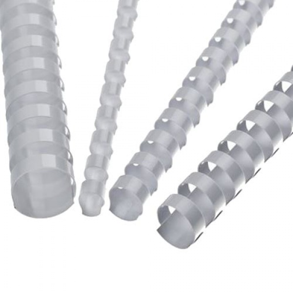 Plastový hřbet pro vazbu dokumentů, průměr 14 mm, kapacita 81 – 100 listů 80 g/m2, formát A4, 21 otvorů.
