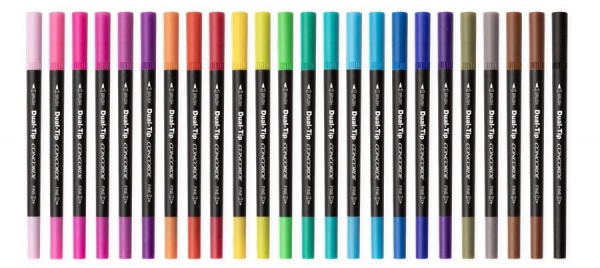 Umělecká sada popisovačů se dvěma různými průměry hrotu: fineliner s hrotem o průměru 0,7 mm a štětcový popisovač s variabilním hrotem od 1–4 mm, díky nim můžete vytvořit nádherná umělecká díla. Sada obsahuje 24 různých barev zahrnující studené i teplé odstíny a vše je přehledně uspořádáno v transparentním praktickém plastovém kufříku s uchem pro snadnou přepravu. Popisovace jsou navíc snadno vypratelné.