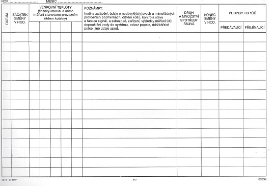 Provozní deník kotelny SEVT 305 001