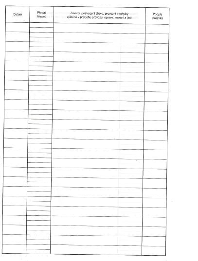 Tento tiskopis se používá jako provozní záznam o závadách, poškození stroje, provozní odchylky atd.