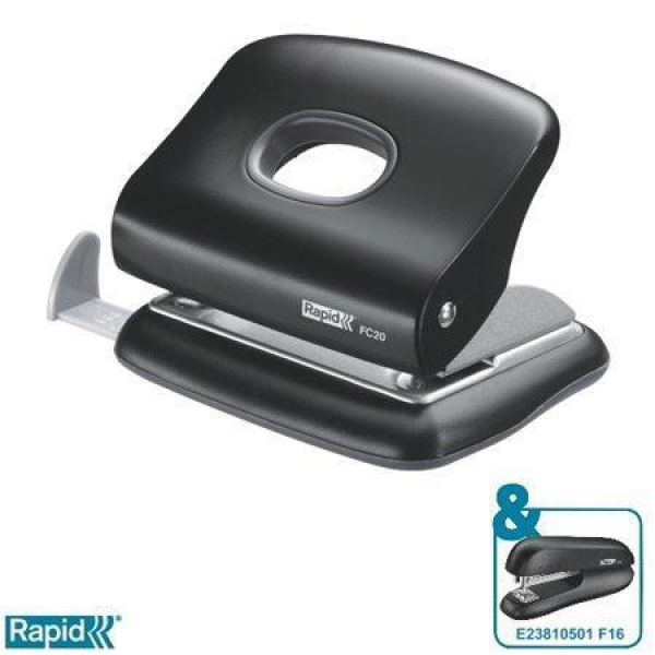 Odolná kovová děrovačka s ramenem a základnou z vyztuženého plastu ABS. Pro použití doma, ve škole i v kanceláři. Proděruje až 20 listů papíru (80 gsm). Pevná kovová konstrukce zajišťuje dokonalé výsledky děrování. Rameno a základna z vyztuženého plastu ABS. Zásobník na odřezky v plastové základně, snadné vyprazdňování.