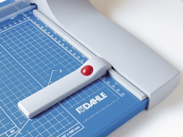 Prémiová kotoučová a velkoformátová řezačka pro profesionální použití. Samo-ostřící horní a spodní nůž z tvrzené oceli pro dlouhodobě přesný řez. Určeno pro více druhů materiálů: papír, karton, textil, fotografie a fólie. Stabilní rozšířený kovový stůl s neklouzavými pryžovými podložkami. Uzavřená hlava nože zajišťuje vysokou míru bezpečnosti. Snadná výměna řezací hlavy. Natištěné úhly, rastr a DIN formáty usnadňují přesné vyrovnání řezaného materiálu. Dva příložníky s dělením v mm a nastavitelným zadním dorazem pro fixaci řezaného materiálu a přesný řez 90°. Automatický přítlak v místě řezu pro rychlé zafixování řezaného materiálu. Pro úsporu místa možnost montáže na stěnu. Lze dokoupit: náhradní řezací hlava. Vyrobeno v ČR. Váha: 5,1 kg. Rozměr stolu: 710 x 384 mm. Délka řezu: 510 mm. Výška řezu: 3,5 mm. DIN: A3. Řezný výkon: 35 listů papíru (80 g/m2).