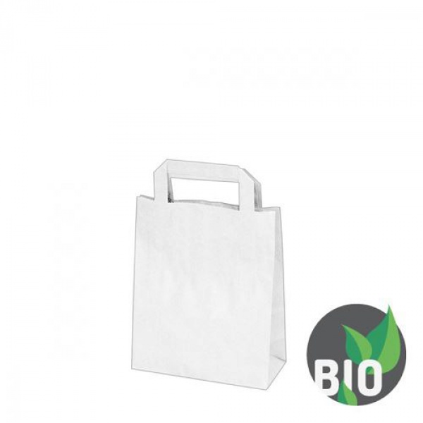 Papírová taška s plochým uchem v bílé barvě.