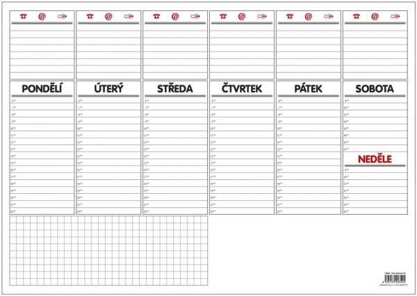 Papírová stolní psací podložka. Odtrhávací listy (blok). Týdenní plánovací kalendář.formát: A3 - 420×297 mm, počet listů: 30.