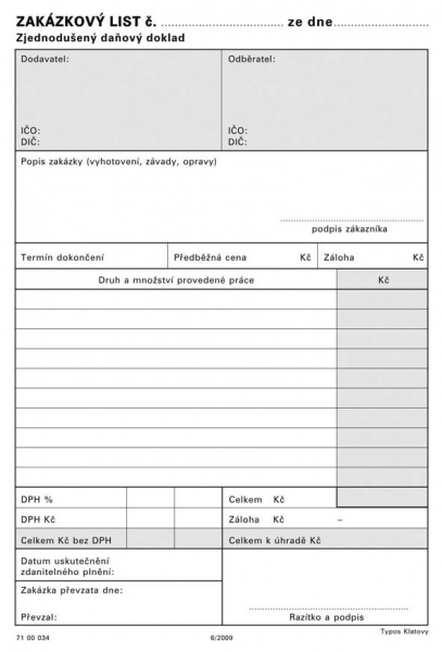 Zakázkový list A5/100ls zjedn.daňový Typos