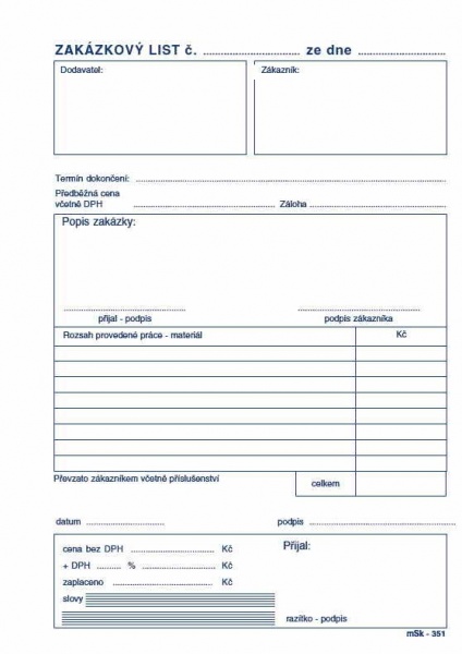 Zakázkový list A5 mSk 351 samopropis / 100ls
